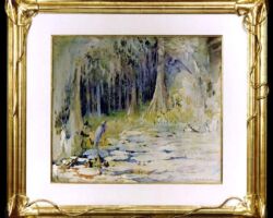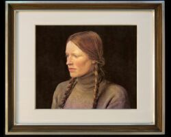 Hand-hewn moulding, accented with gilded interior and exterior portions. Displaying the original watercolor "Helga" by Andrew Wyeth. This pieces is part of the Greenville County Museum of Art's permanent collection.