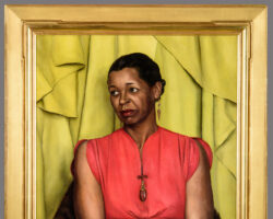 Carved interior, slant-style frame and water gilded with 22 Kt. gold leaf. Displaying "Portrait of Ethel Waters" Luigi Lucioni (American, 1900-1988), 1939, oil on canvas, 32 x 25 in. Part of the permanent collection of the Huntsville Museum of Art.