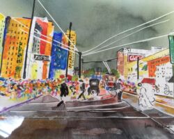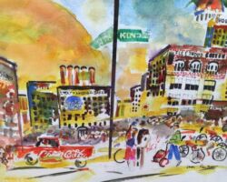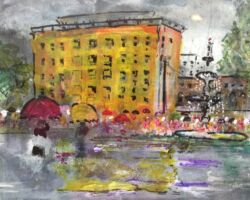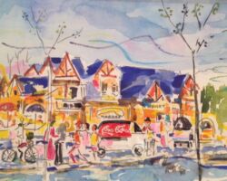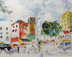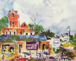 Some say that watercolors are the most difficult medium to produce a work of art. Its look of ease and spontaneity makes competence seem within reach but to come to this goal takes a lot of patience. The painter should understand that some of his work cannot be corrected. He must consider the learning experience from a poor painting will profit him down the road. A good watercolor puts together several elements. Composition, movement, and juxtaposition of color are the most important. Alvaro Castagnet, one of the best watercolorists of our time, told a class that “just a pretty picture will not get it.” He is a believer that a good watercolor “says something.” I am a believer in his thinking. – Billy Parker