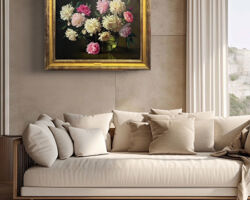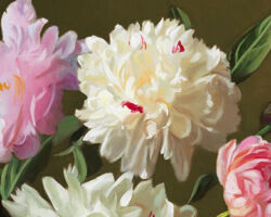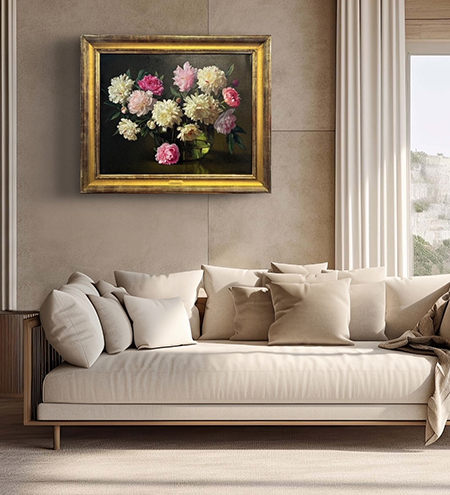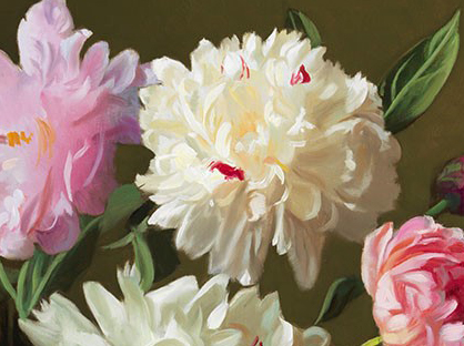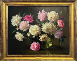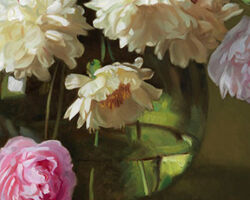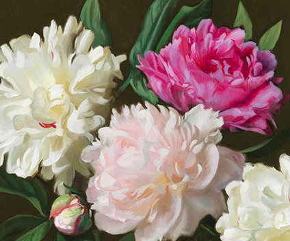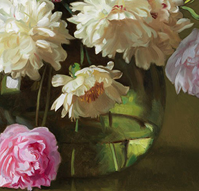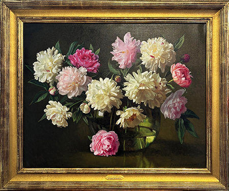 Peonies in Demijohn © Evan Wilson, 24 X 30 inches, Frame OD 31.5 X 37.5 inches