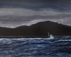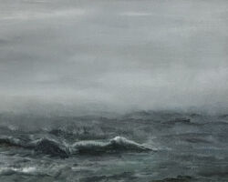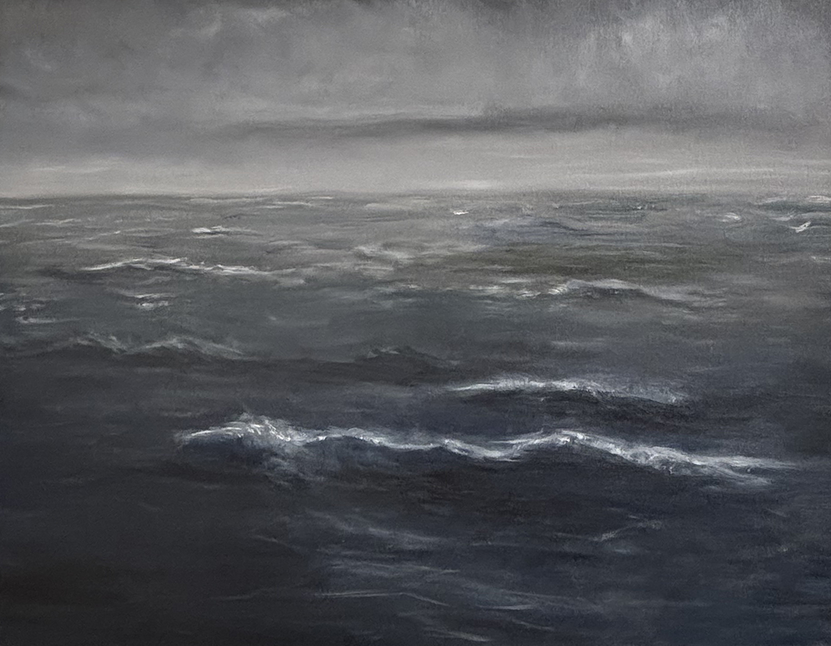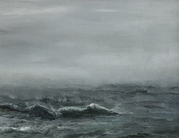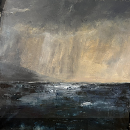 Scorey paints in oil on canvas or wood and often uses the cold wax process. The cold wax process is a mixture of beeswax, resin, oils and mineral spirits. Painting with cold wax and oil is a process of addition and subtraction, laying down layers of oil and wax impressing textures, scratching, scraping and laying more layers of colors and wax until the artist feels like it’s complete.