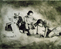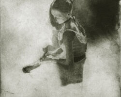 “Etching is much more tedious, and thus a more rewarding experience than painting. Both a science and an art, in its simplest form, it is to make a line. Nevertheless, that is only the beginning of a long and wondrous journey into the mind of an artist and a scientist. With a paintbrush, the painter can cover large areas in rapid time, and covers his errors with a minimum of effort. However, the etcher must move along at a snail’s pace in comparison. It is making one line at a time, allowing them to cross and weave together to form an image in his mind, that he is only able to see until hours, sometimes weeks later. It is a long and arduous process, to etch, and only those with particular temperaments will be allowed to enter its wondrous domain.” -Artist, Stephen Scott Young